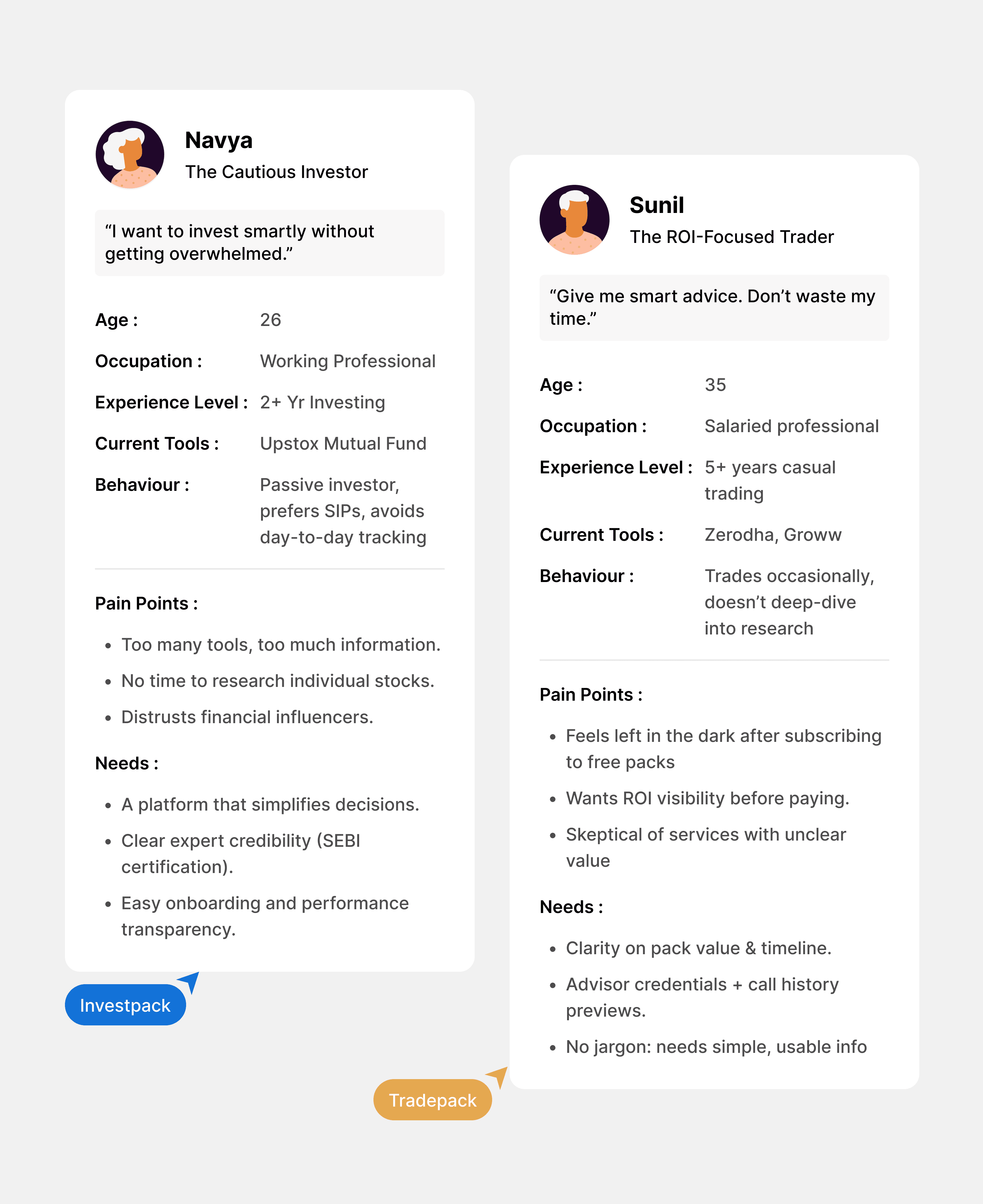I had conversations with real Pickright users and curious first-time investors. They shared what confused them, what they trusted, and what made them hesitate. Based on their stories, I created focused personas that helped me design with empathy not assumptions.