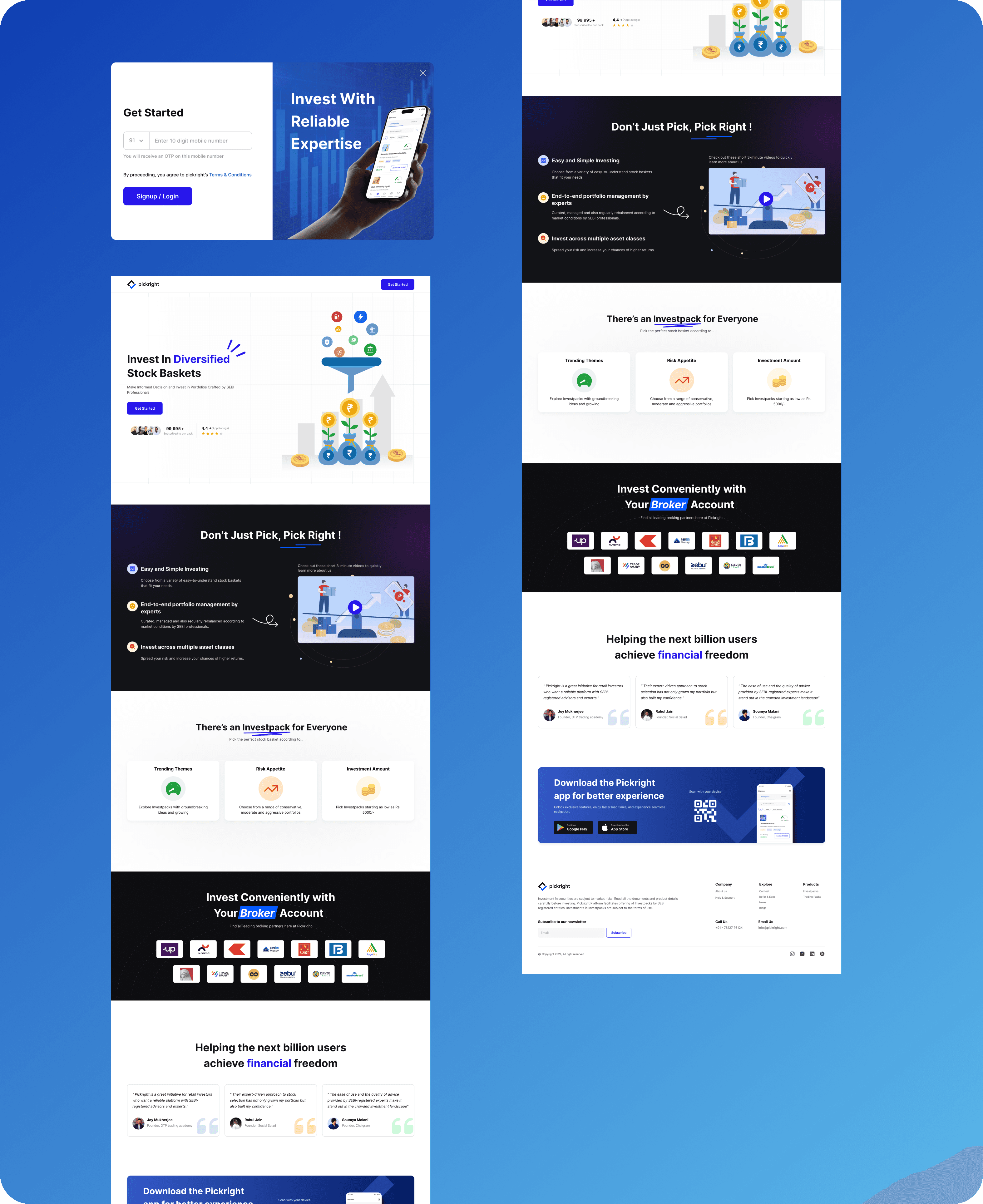 To ensure consistency across Investpack and Tradepack landing pages, I used the Pickright design system, built around: