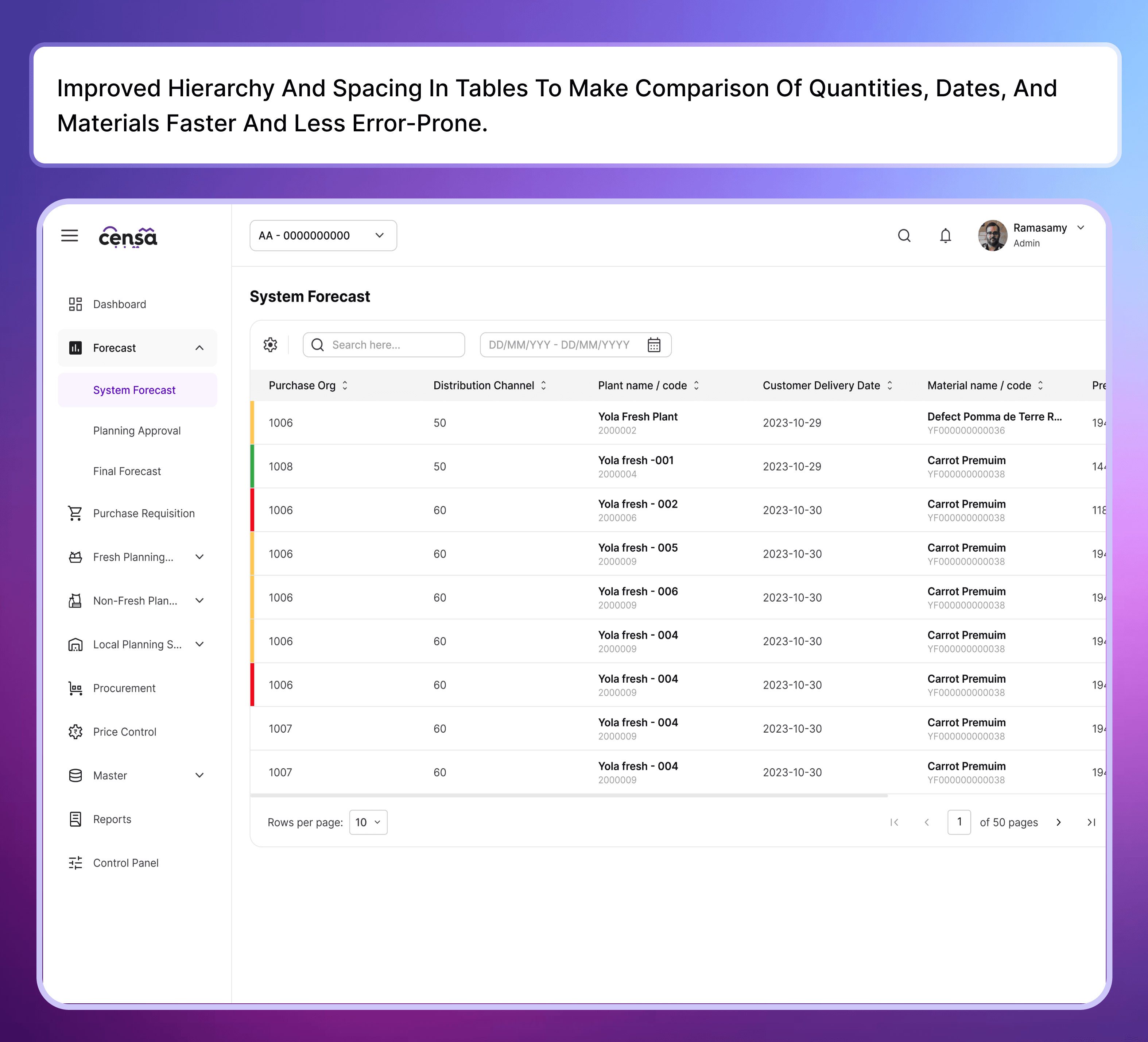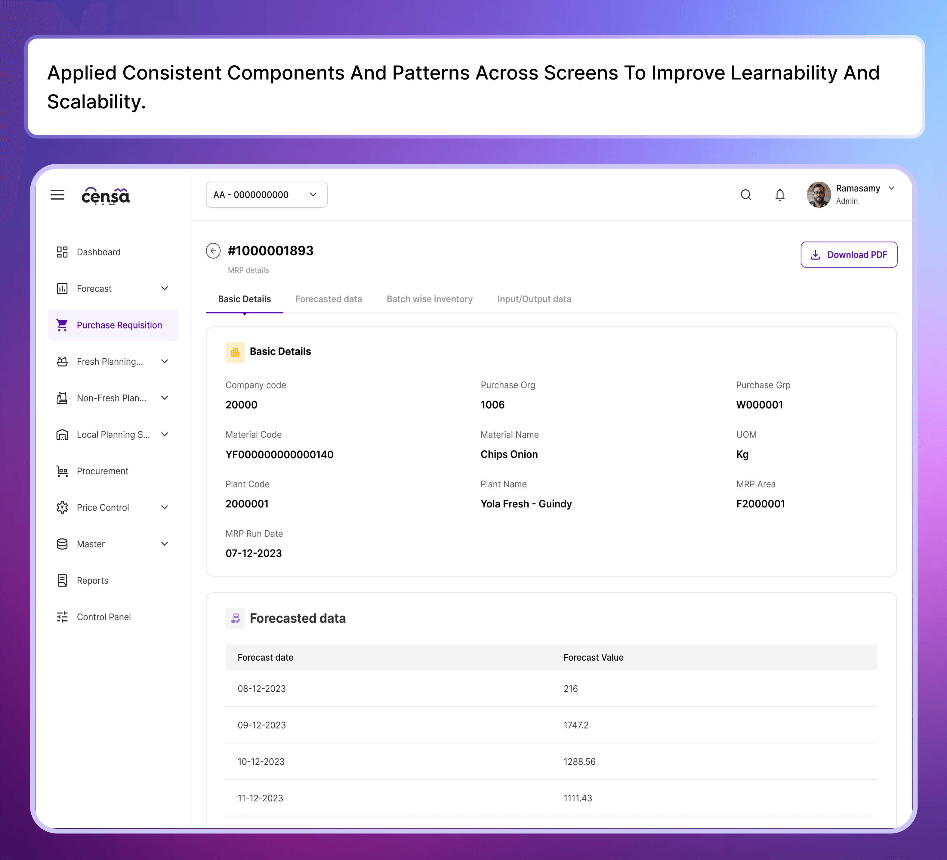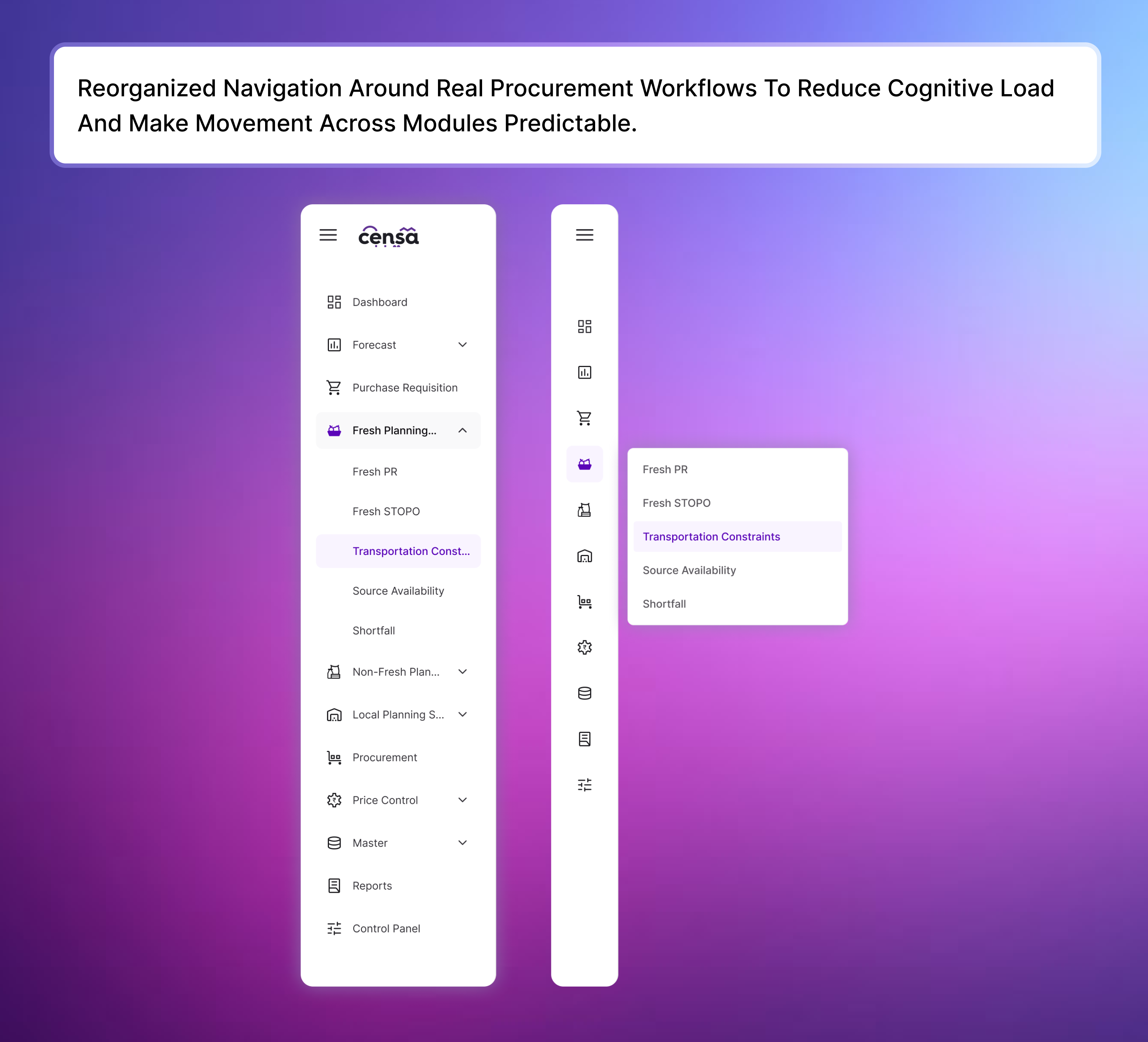 The redesign brought consistency across procurement workflows, improved usability for daily users, and established a scalable foundation aligned with the Censa design system.