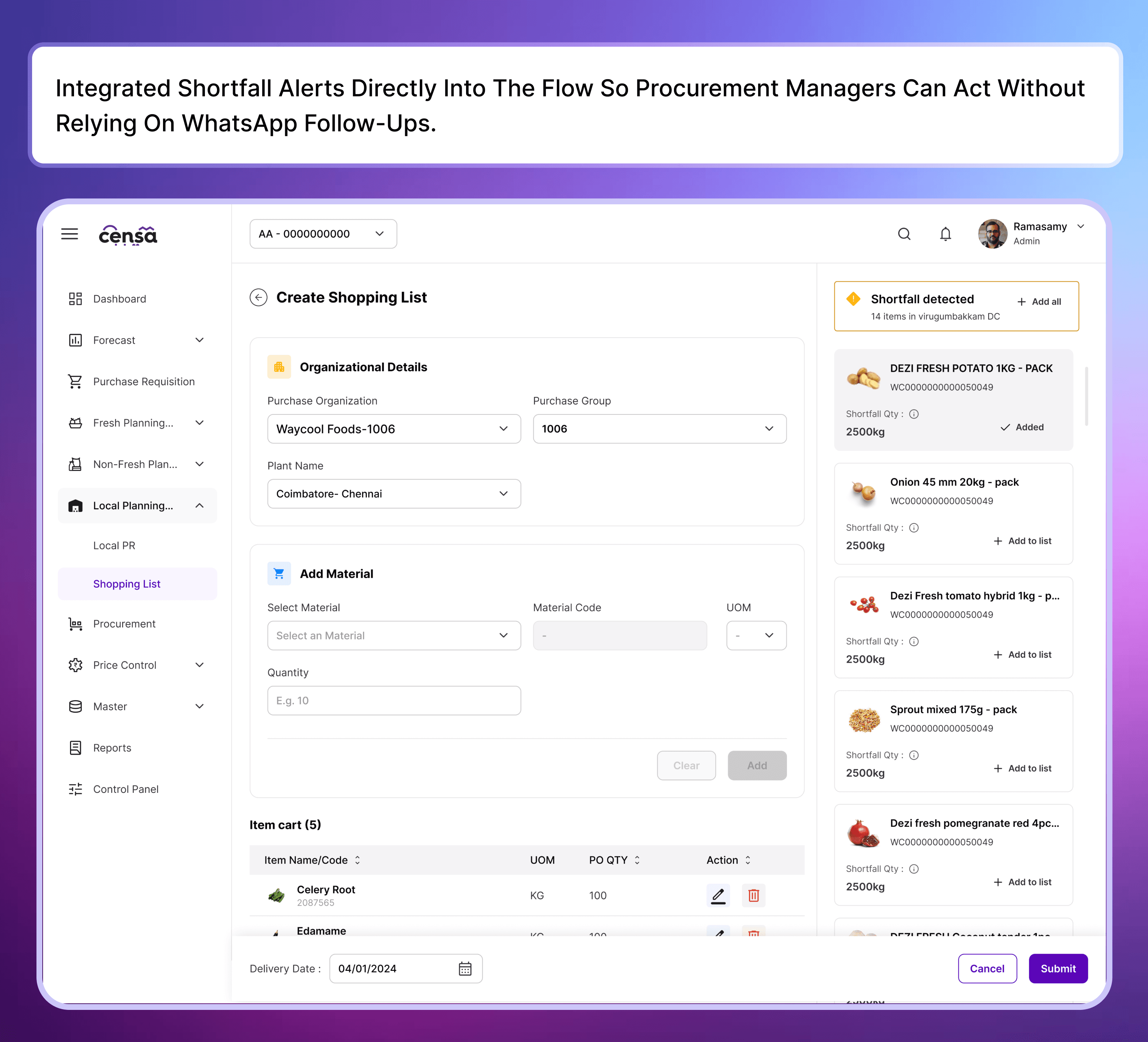 Reduce reliance on WhatsApp by centralizing procurement tracking and communication