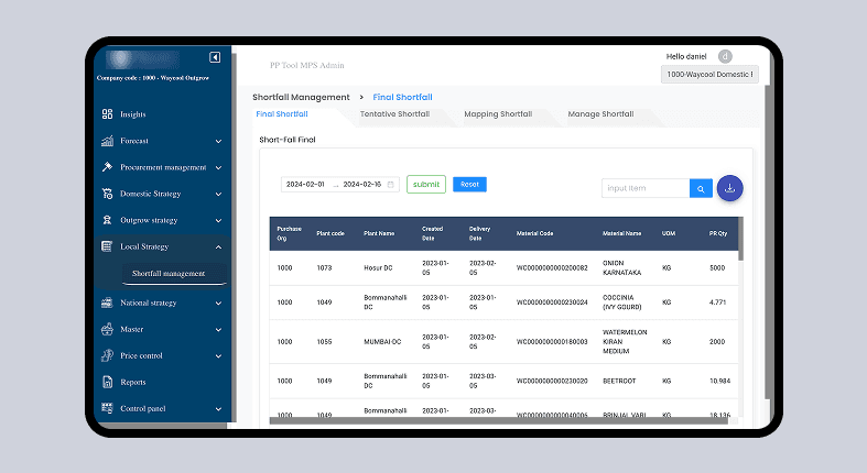 The Procurement Portal is a core enterprise SaaS platform used by procurement managers to plan, manage, and track procurement activities across warehouses.
